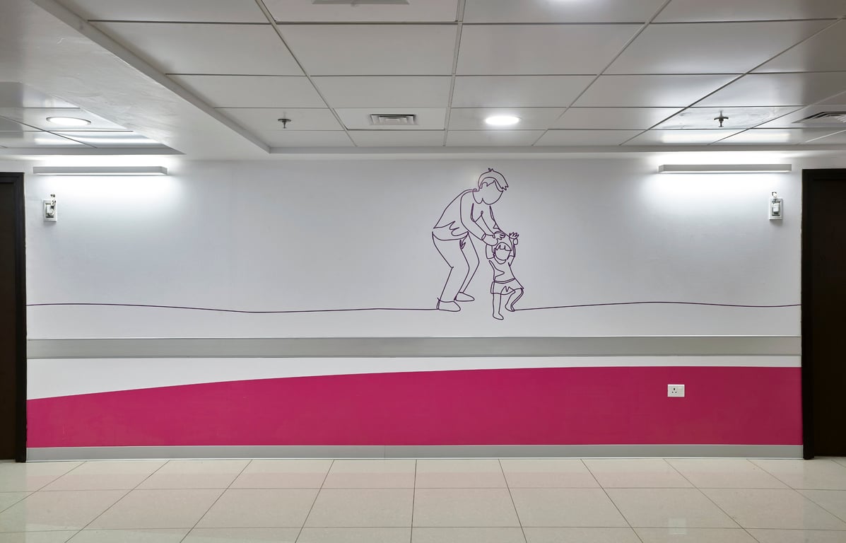 JCD team visually integrated on wall surfaces, Cloudnine Corporate Branding Images and Patient Centric content messaging using minimalistic, non intrusive approach, to seamlessly merged content with Media NXT digital wall coverings. Over 20 plus Hospitals (~ 60k to 80k sqft wall coverings) and all upcoming locations, the visual expressions are replicated giving the Customer a uniformly harmonised experience pan India!
